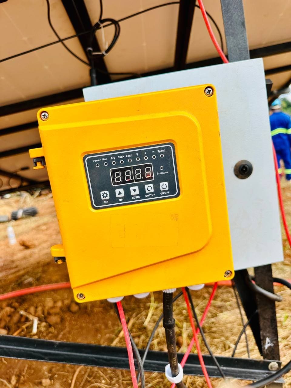 L'installation a été réalisée avec soin, en respectant les normes de sécurité et d'efficacité énergétique. Le système est désormais opérationnel et fournit un pompage fiable et écologique pour l’irrigation du champ.
