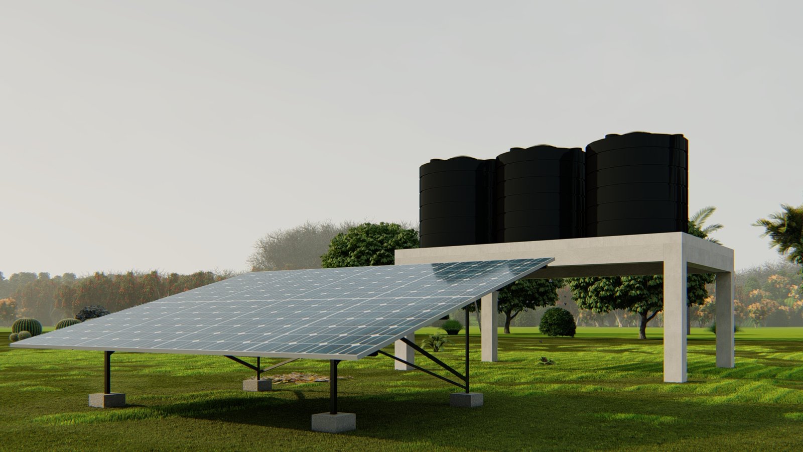 - Pompe solaire de 3 kW pour assurer un pompage efficace et continu.